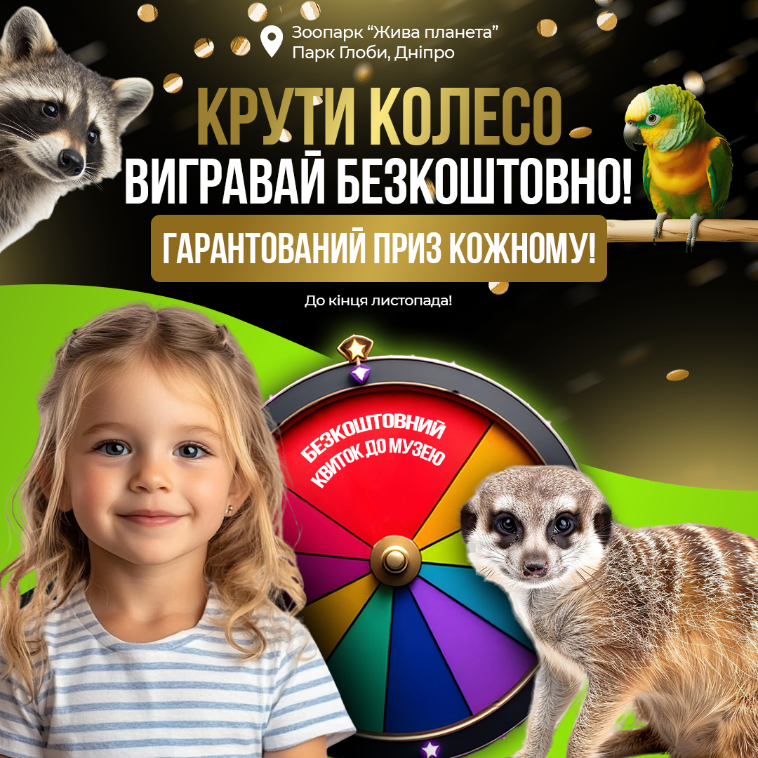 Ми запускаємо "Колесо Фортуни" з гарантованими призами, щоб зробити ваше відвідування наших тварин ще більш незабутнім.